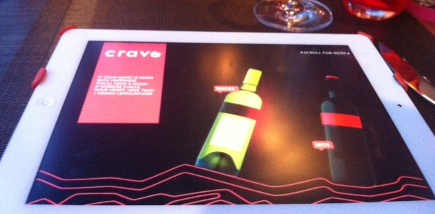 So now we’re really back to the future in one of those hotels where they give you smart phones and you order all your food off of ipads. They have a restaurant called Crave which is running a wine promotion I decided to drop in on (face first).